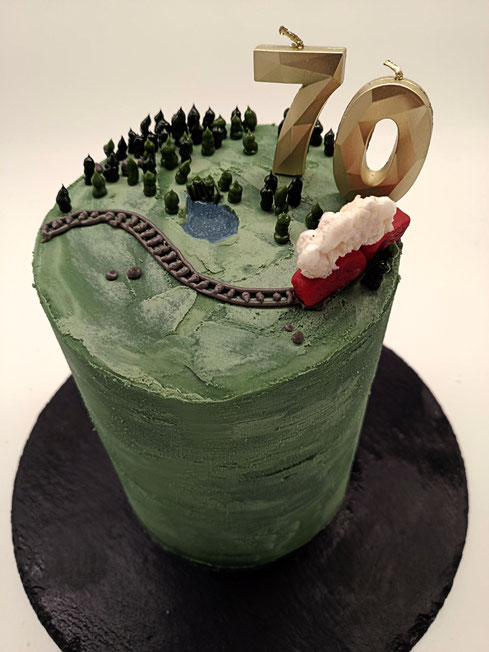 Etwas kurzfristig zum 70. Geburtstags meines Onkels habe ich dieses kleine Törtchen gemacht. Er ist leidenschaftlicher Zug Fan und daher durfte dieser als Thema nicht fehlen. Im Inneren steckt ein herbstlicher Genuss: Walnusskuchen und Bratapfel-Käsekuchen mit einer feinen Schicht von Schokocreme und Karamell.